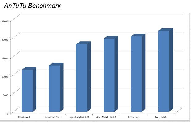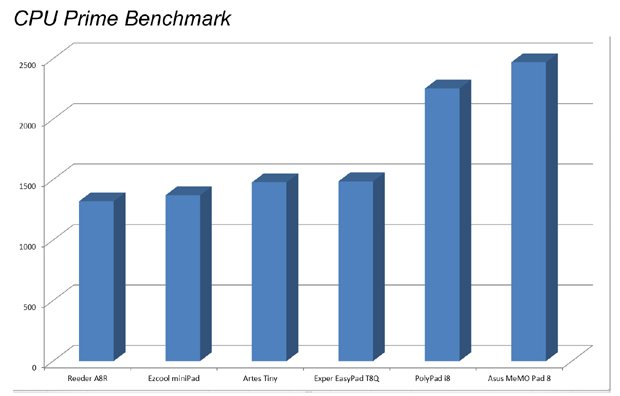 AnTuTu test sonucuna göre tam 21822 skorunu alan i8, bu sonuçla AnTuTu tarafından "Harika" şeklinde değerlendiriliyor. Bu sonuçla daha önce incelediğimiz Reeder A8R, Ezcool miniPad, Exper EasyPad T8Q, Asus MeMO Pad 8 ve Artes Tiny'den daha iyi bir grafik elde eden PolyPad i8, CPU Prime'da ise Memo Pad 8'in bir tık gerisinde görünüyor. PolyPad i8'in CPU Prime'dan aldığı sonuç ise 2254 puan.