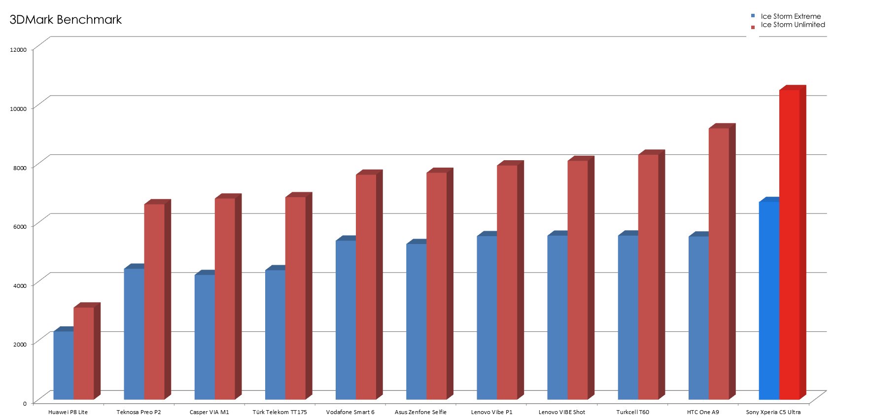 C5 Ultra'nın bataryası ise 2930 mAh kapasitesinde. Bu batarya oranıyla pil ömrü sonuçlarında 3000 mAh'lik ZenFone Selfie'yi arkasına almayı başaran C5 Ultra, boyutuna karşın iyi bir pil ömrü sağlıyor. Şimdi tüm test sonuçlarına bir arada bakalım...