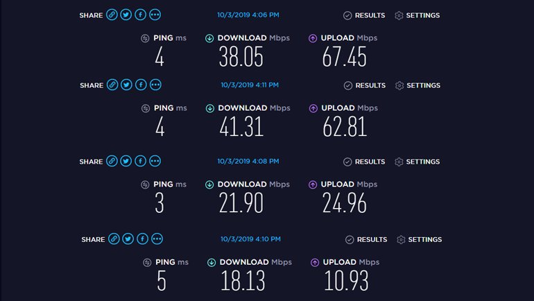 Cihazın yanı başında yaptığımız ölçümlerde 38 ila 41 Mbps download, 67 ila 62 Mbps upload sonuçları üreten RE300, 21 metre kadar uzaklaştığımızda da 21 ila 18 Mbps download, 24 ila 10 Mbps upload sonuçları üretti. Bunlar da gayet tatmin edici sonuçlar doğrusu. Elbette bu sonuçlar, altyapınızın performansına bağlı olarak artış gösterecektir.