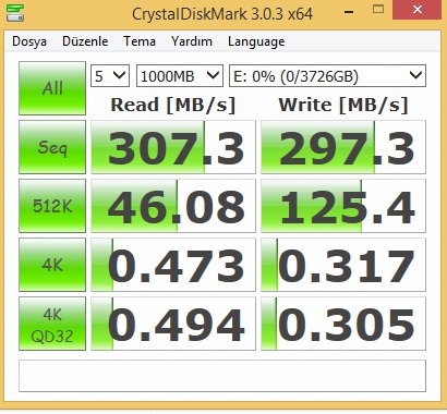 Son olarak My Book Duo'nun performansında da bahsedelim. WD'nin söylediğine göre 290 MB/s aktarım hızı sunan My Book Duo, bizim yaptığımız CrystalDiskMark testinde daha yüksek sonuç almayı başardı. Sıralı okuma noktasında saniyede 307 MB, sıralı yazma noktasında ise saniyede 297 MB sonuç alan disk, böylece ofiste veya evde yedekleme için kullanabileceğiniz, aynı zamanda faal olarak da kullanabileceğiniz bir disk olabilme yeteneğine sahip olduğunu gösteriyor.