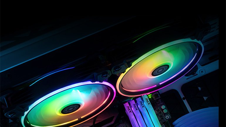 XPG Levante 240, tabii ki tam boyutlu bir soğutma bloğundan oluşuyor. Alüminyum radyatörün ön tarafında ise üzerinde çift halkalı 120 mm'lik fanların takılı olduğunu görüyoruz. Bu fan tasarımları hem düşük ses sağlayan tasarıma sahip, hem de RGB ışıklandırmalarıyla oyuncuların beğeneceği derecede cazibeli. Fanlar ARGB Sync tarafından yönetilen 20 LED içeriyor ve bu LED'ler özellikle yeni nesil anakartlar olmak üzere pek çok anakartla uyumlu durumda.